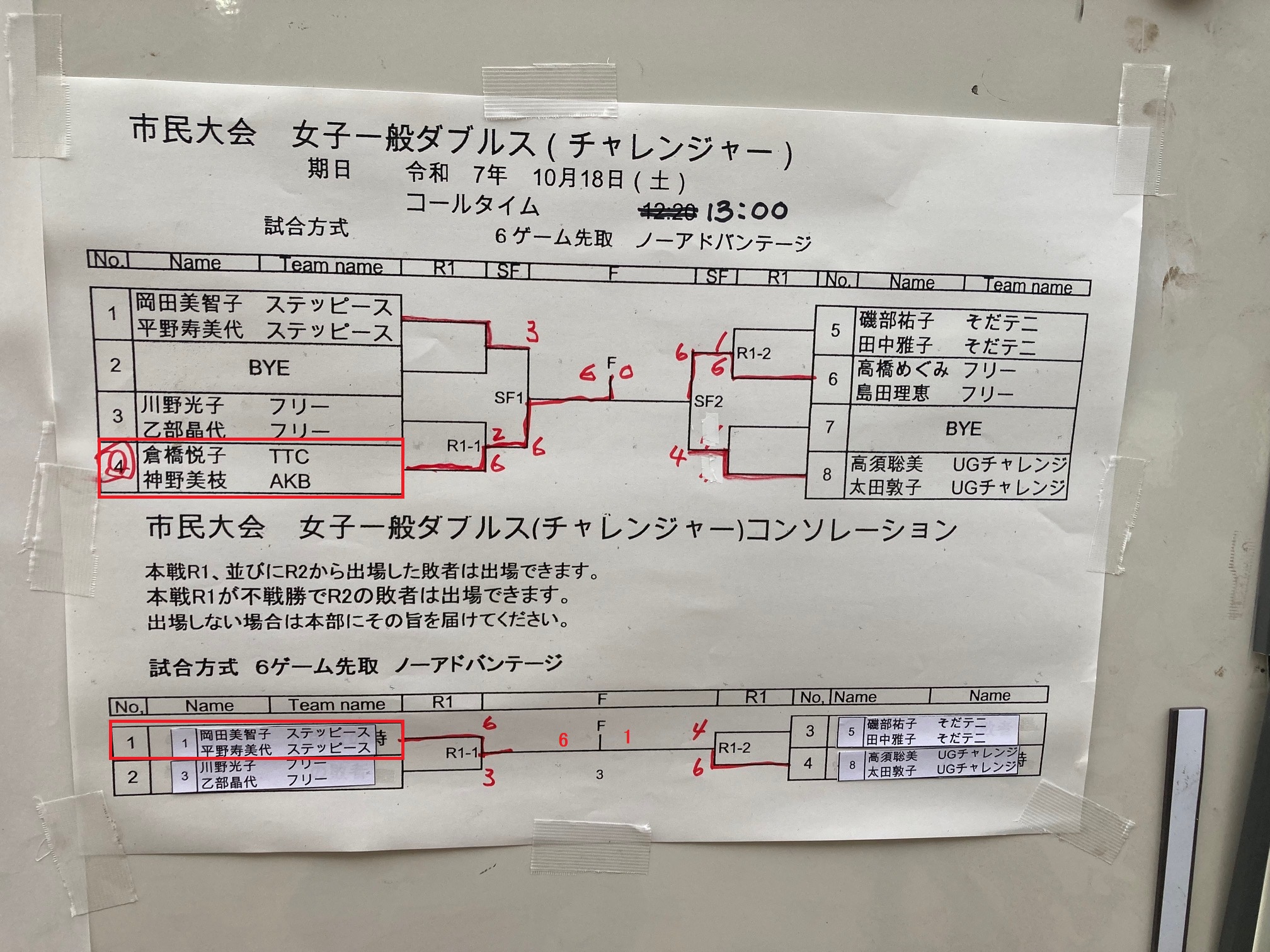 10/18の安城市民ダブルス一般、チャレンジャー大会結果です。